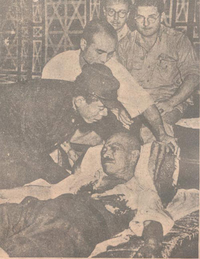 1945年8月,日本無(wú)條件投降后不久,東條英機(jī)自知罪責(zé)難逃,舉槍自殺。圖示他中彈獲救時(shí)之痛苦情狀。作為頭號(hào)戰(zhàn)犯,他在獲救后仍被送上絞刑架。三絞廢命。