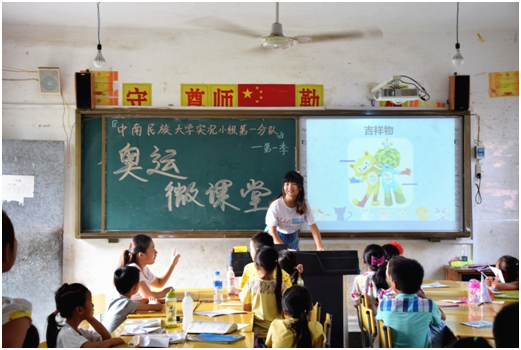 中南民族大學(xué)的實(shí)況小組志愿服務(wù)隊(duì)到貴州從江縣貫洞鎮(zhèn)龍圖小學(xué)支教,針對(duì)當(dāng)?shù)亓羰貎和狭艘惶镁实膴W運(yùn)微課堂,并組織開展了龍圖小學(xué)趣味運(yùn)動(dòng)會(huì),將奧運(yùn)理論與實(shí)踐相結(jié)合,傳遞奧運(yùn)精神。