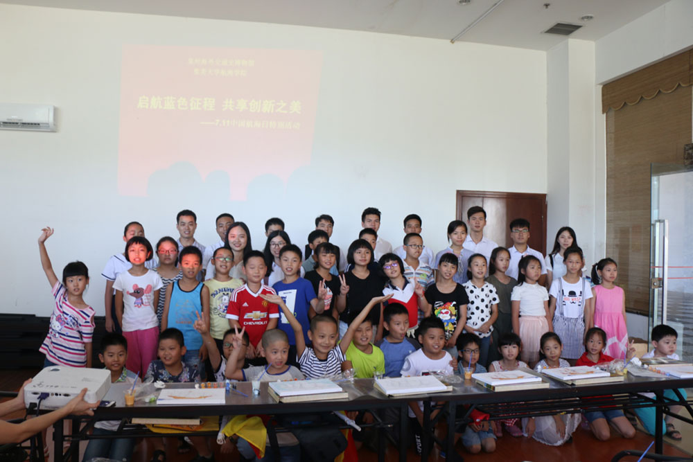 實(shí)踐隊(duì)與泉州海外交通史博物館共同開展了“啟航藍(lán)色征程,共享創(chuàng)新之美——7.11中國航海日”特別活動,向30位小朋友講解航海小知識,介紹古老的旗語和莫爾斯電碼等!跋M覀兊暮胶N幕軌騻鞑コ鋈,從娃娃抓起” 隊(duì)長胡栩禎說。