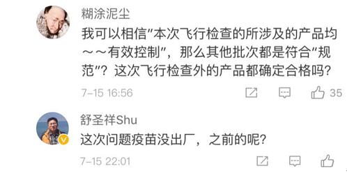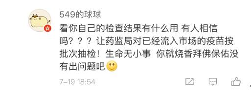 網(wǎng)友“楊O_o小仙兒”表示:“只想知道這個造假帶來的后果是什么?是之前接種過這個批次的都沒有藥效還是怎樣?有關(guān)部門能不能說清楚,這可是人命關(guān)天的事,不要這樣含糊其辭!