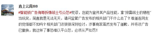 引發(fā)爭議的廣告是“凱迪仕智能鎖”雙11期間推出的。網(wǎng)友認(rèn)為該廣告涉嫌侮辱排雷戰(zhàn)士,紛紛聲討:利欲熏心,無底線,無下限,要是不肅清,對不起那么多流血犧牲的英雄!