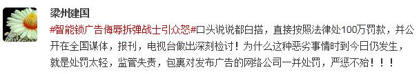 針對此次“凱迪仕智能鎖”“拆彈磚家”廣告事件,有網(wǎng)友認(rèn)為平臺應(yīng)該承擔(dān)相應(yīng)責(zé)任。