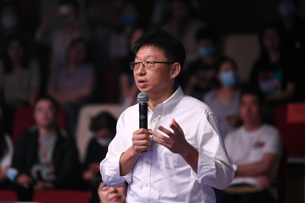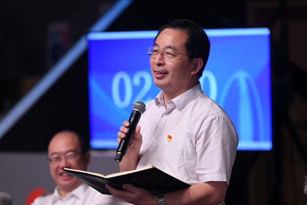 人民日報社機關黨委常務副書記魏建周向選手提問