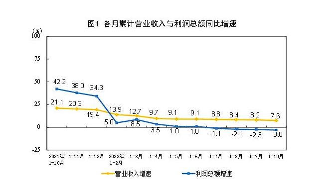 國家統(tǒng)計(jì)局?jǐn)?shù)據(jù)顯示,今年前10個(gè)月,全國規(guī)模以上工業(yè)企業(yè)營業(yè)收入同比增長7.6%,利潤同比下降3%。國家統(tǒng)計(jì)局工業(yè)司高級(jí)統(tǒng)計(jì)師朱虹解讀工業(yè)企業(yè)利潤數(shù)據(jù)時(shí)表示,總體看,工業(yè)企業(yè)利潤下降,結(jié)構(gòu)繼續(xù)改善,部分中下游行業(yè)利潤回升明顯。但也要看到,近期國內(nèi)疫情散發(fā)多發(fā),世界經(jīng)濟(jì)衰退風(fēng)險(xiǎn)加劇,工業(yè)企業(yè)效益恢復(fù)面臨較大壓力。